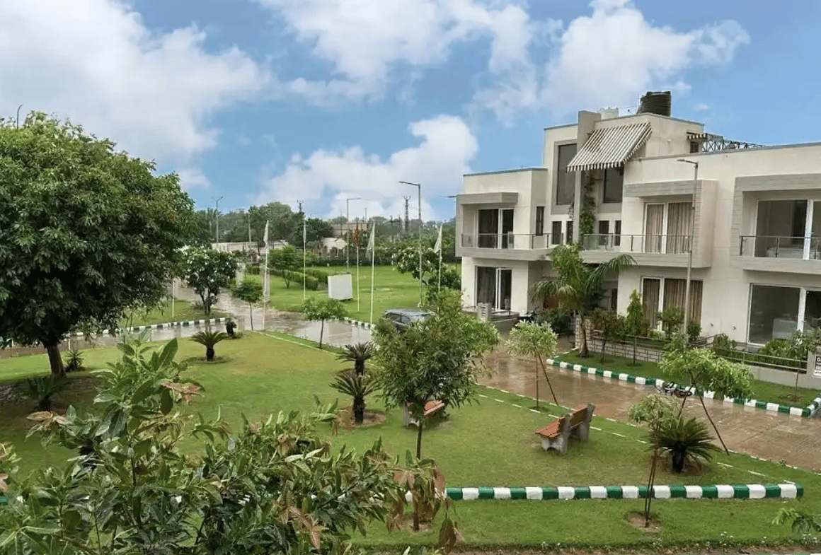he enchanting lifestyle of Krish Harmony – where nature and luxury seamlessly merge. These villas provide a lavish and cozy existence amidst lush green surroundings. Meticulously crafted, these residences ensure optimal airflow and breathtaking views of the landscape. Set in the scenic embrace of Alwar Bypass Road in Bhiwadi, Krish Harmony offers a serene getaway without compromising on connectivity. Discover our exquisite Ready-to-Move 3 BHK Duplex Villas, 2000 sq.ft., 120 sq.yads starting from just 62.5 Lacs. Each villa comes complete with a personal car parking space, a private lawn, and a spacious terrace, all enveloped by ample greenery, this haven redefines contemporary living. Positioned just an hour’s drive from Gurugram, Krish Harmony strikes a harmonious balance between urban convenience and natural allure. Indulge in a wide array of modern amenities, including a health club, gymnasium, kids play area, shopping complex, executive club, ample green spaces, 24×7 power supply, secured campus and a refreshing swimming pool, all in gated society. Krish Harmony have only 55 villa, encompasses captivating architectural nuances, a vibrant color palette, and all essential facilities, perfectly nestled at the heart of bustling Bhiwadi city.