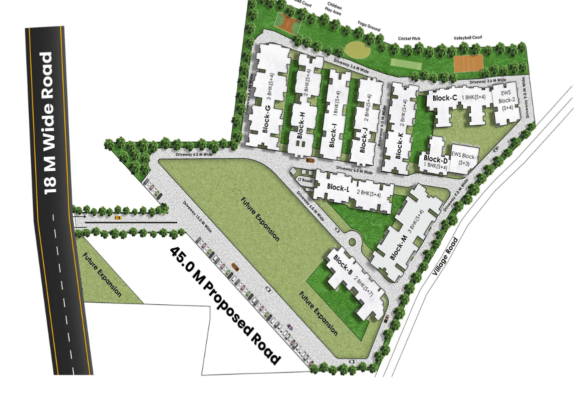 Shubhashray Uptown offers  2BHK & 3 BHK units in Smart, Prime and Elite categories in S+4 and S+7 building respectively. For convenience, each tower has it’s separate passenger lift. Enjoy the playful spaces in each of our 13 incredibly captivating green areas that revitalize and soothe your mind, besides providing a secure and playful atmosphere where children can grow up. Shubhashray Uptown feature state-of-the-art furnishings with balconies that open up to your private greens. It is your gateway to modern living. It comprises Bhiwadi’s largest sports zone within the society having cricket pitch and a badminton court, a children’s play area and a Yoga park.